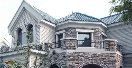 屋面及外墻建筑裝飾材料,屋面材料包括:先路達(dá)全背膠玻纖瀝青瓦、陶土瓦、蛭石彩鋼瓦、金屬瀝青瓦,屋面雨水收集系統(tǒng);外墻材料包括:掛板(PVC、水泥纖維板)、劈開磚、砂巖、文化石。