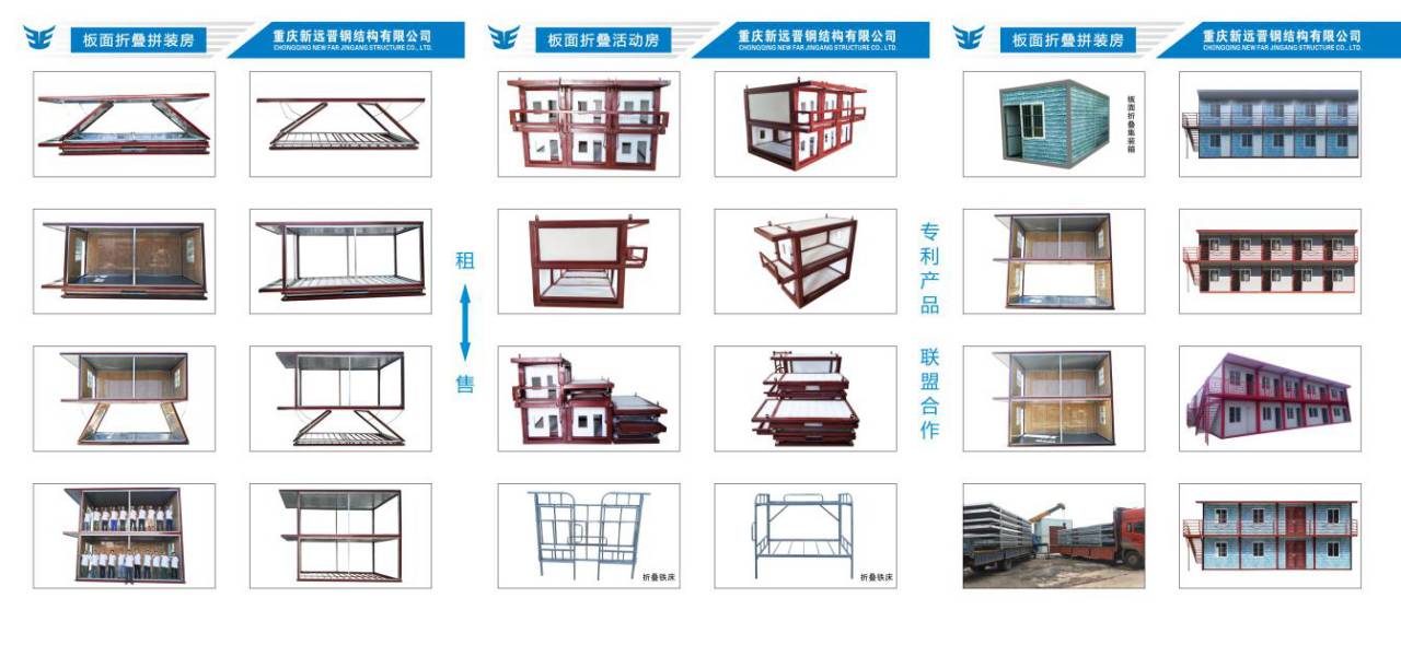 公司簡介 重慶新遠(yuǎn)晉鋼結(jié)構(gòu)有限公司由5位科技技術(shù)人員組建成立的,主要開發(fā)技術(shù)、創(chuàng)新、生產(chǎn)、加工、聯(lián)盟等建筑工程配套安全設(shè)施產(chǎn)品。有板面折疊集裝箱,節(jié)能環(huán)保折疊活動(dòng)房、折疊拼裝活動(dòng)房、折疊鐵床、免粘膠貼廣告布的節(jié)能環(huán)保圍擋、仿古圍擋,此產(chǎn)品深受同行業(yè)用戶歡迎,得到廣大用戶的厚愛。 主營展品 板面折疊集裝箱、節(jié)能折疊活動(dòng)房、折疊拼裝活動(dòng)房、折疊鐵床、免粘膠貼廣告布的節(jié)能環(huán)保圍擋 聯(lián)系方式