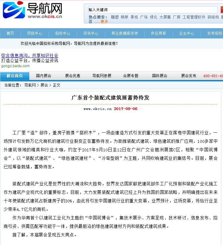 建設(shè)行業(yè)信息網(wǎng)發(fā)布有關(guān)2017中國筑博會·廣州開幕式的報(bào)道 (2017-10-30)
