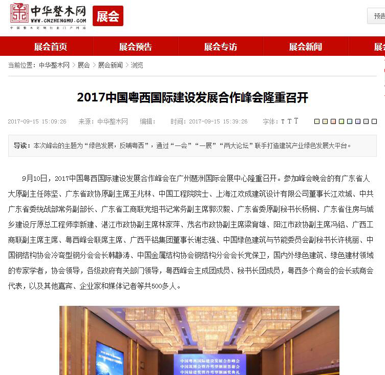 木材圈網(wǎng)發(fā)布有關(guān)2017中國粵西國際建設(shè)發(fā)展合作峰會的報(bào)道 (2017-10-31)